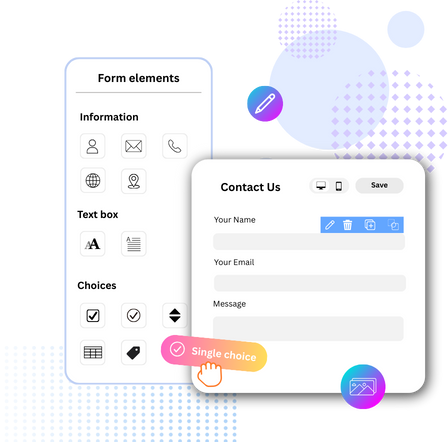 Create any form you need using our intuitive drag & drop builder — no coding required.
